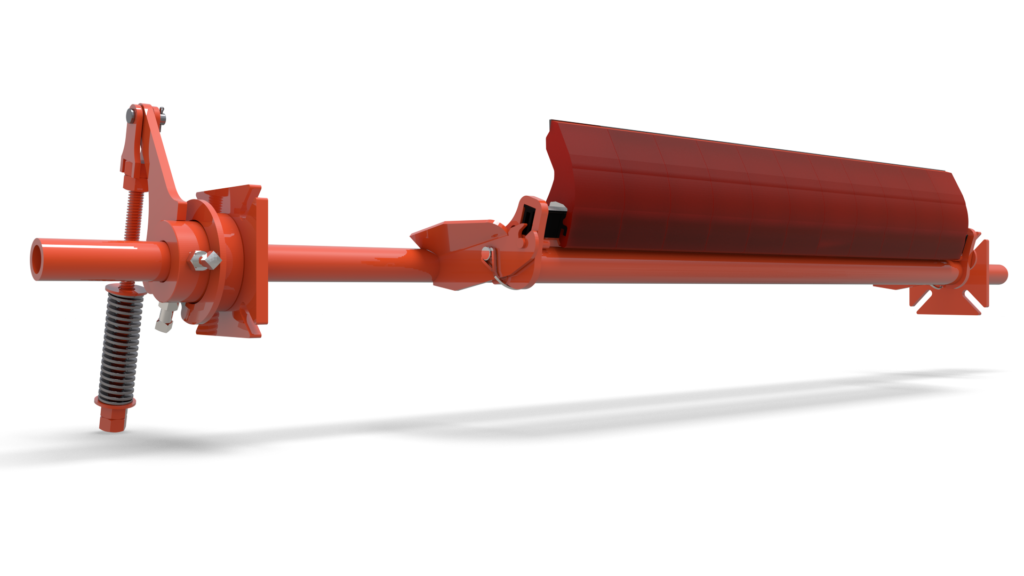 Segmented into 3” urethane chunks with tungsten carbide tops, the belt cleaner’s blade is engineered for long life and efficient material shedding. Superior’s design allows the blade segments to individually conform to the belt for effective cleaning. Additionally, the cleaner’s blade angle is adjustable to accommodate mechanical and vulcanized splices.